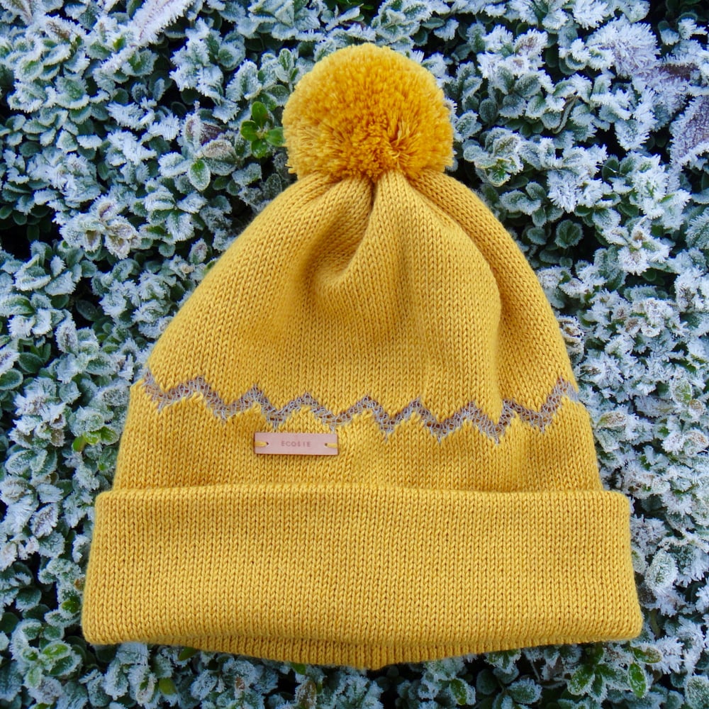 Double layer merino beanie with small pom and a wave of fairisle reflective yarn to increase night time visibility while out and about.